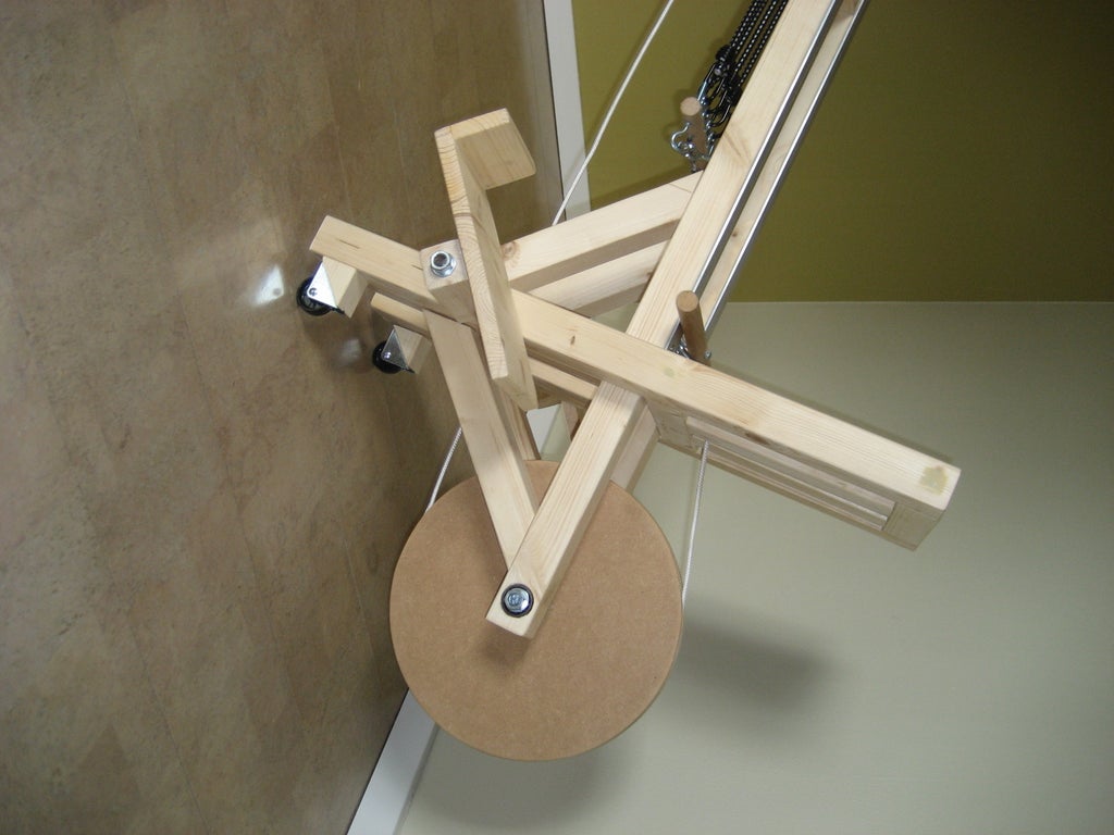 Also cut 30 cm off the wooden pole. After this pass through the carbine rope and fix it with a cable clamp. Home built rowing machine - or the 50 rower.